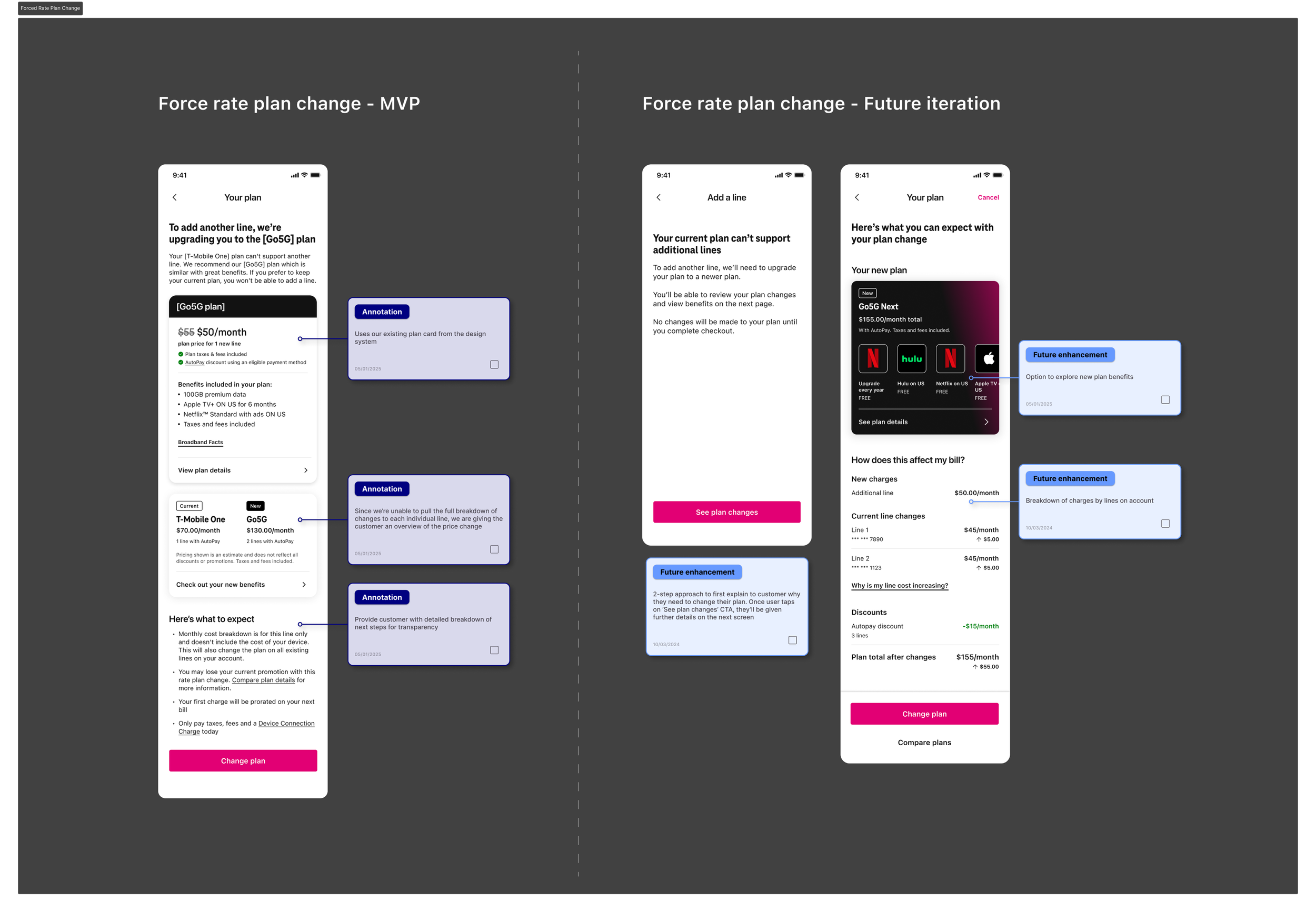 Lack of pricing transparency: Due to backend limitations, we couldn’t show users the exact price difference for their existing lines.