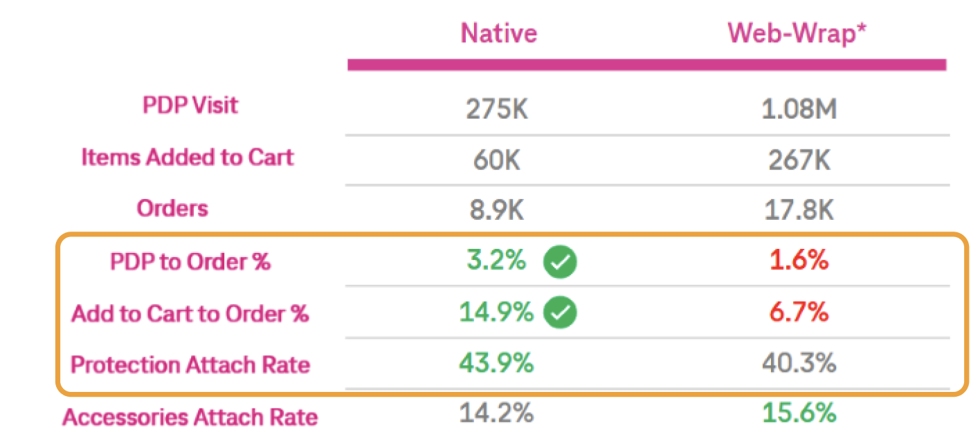 Native AAL outperforms previous web-wrapped flows: Early data showed that the native experience made a significant impact to conversion rate, with Native Add-a-line outperforming the web-wrapped experience by 64%. Native add-to-cart order conversions are at 10% compared to web-wrapped experience at 6%. (Data from 12/23/25).